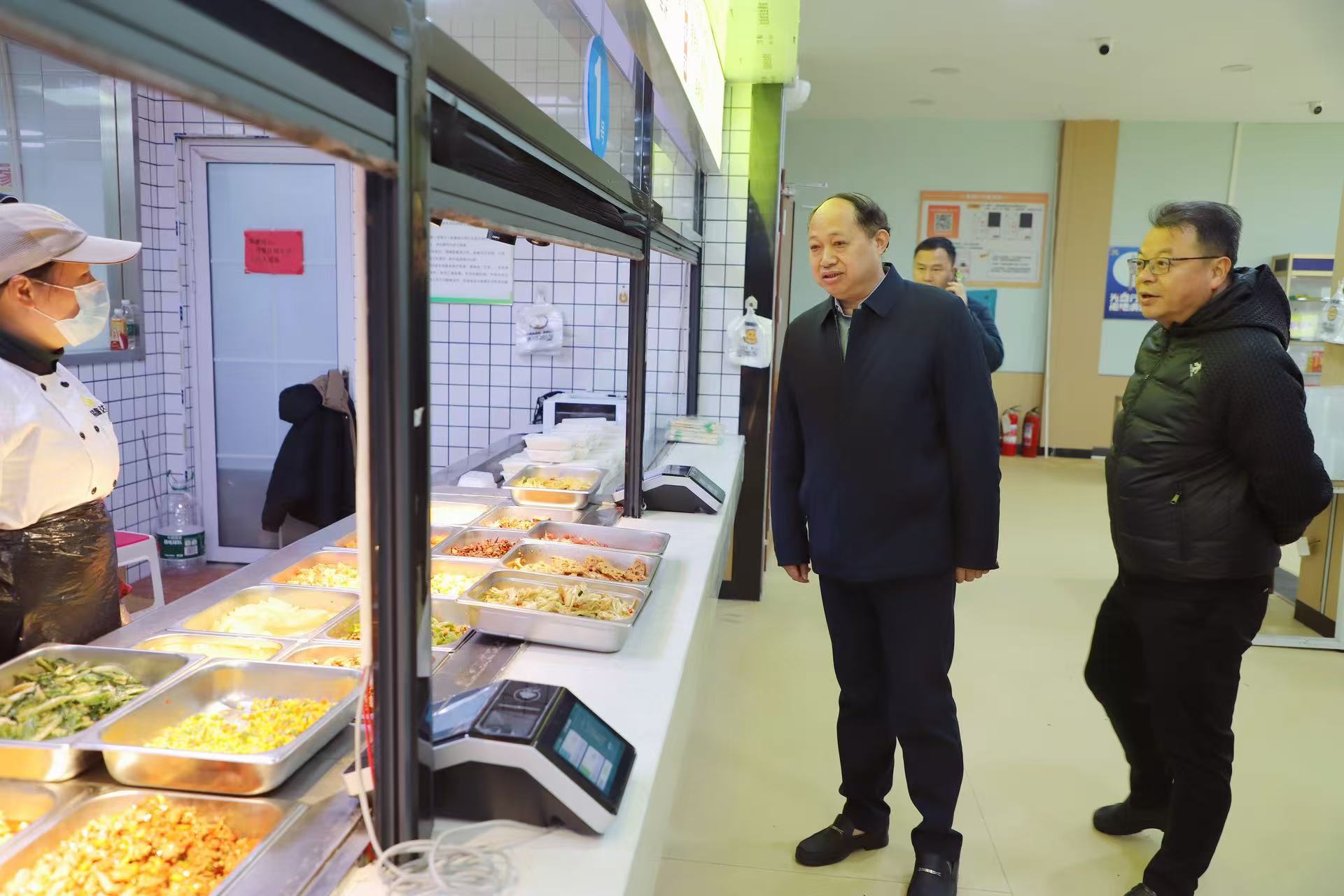新学期伊始,为进一步做好校园食品安全保障工作,提升学生生活质量,3月3日中午,党委书记李三福,校长贺战兵,副校长程桂珍率队深入学生公寓一区、二区食堂,实地检查食品安全、饭菜质量等工作。