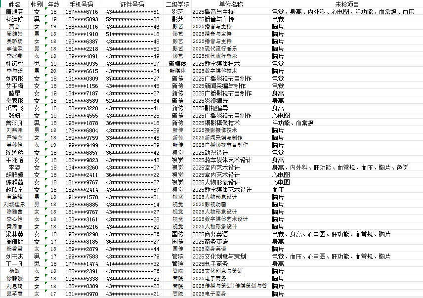 2.请各二级学院通过班级群、辅导员通知等方式逐一告知学生补检时间、地点及注意事项,确保无遗漏。